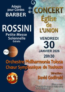 Un concert aura lieu le vendredi 30 janvier 2026 à 20h30, à l’église de L’Union. Au programme: